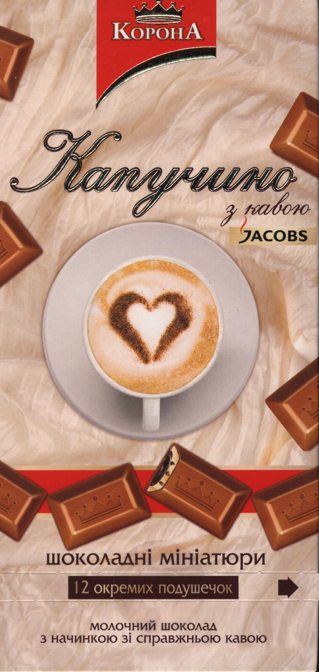 Корона \ Молочний шоколад з начинкою “капучино” з кавою Jacobs \ Молочный шоколад с начинкой “капучино”