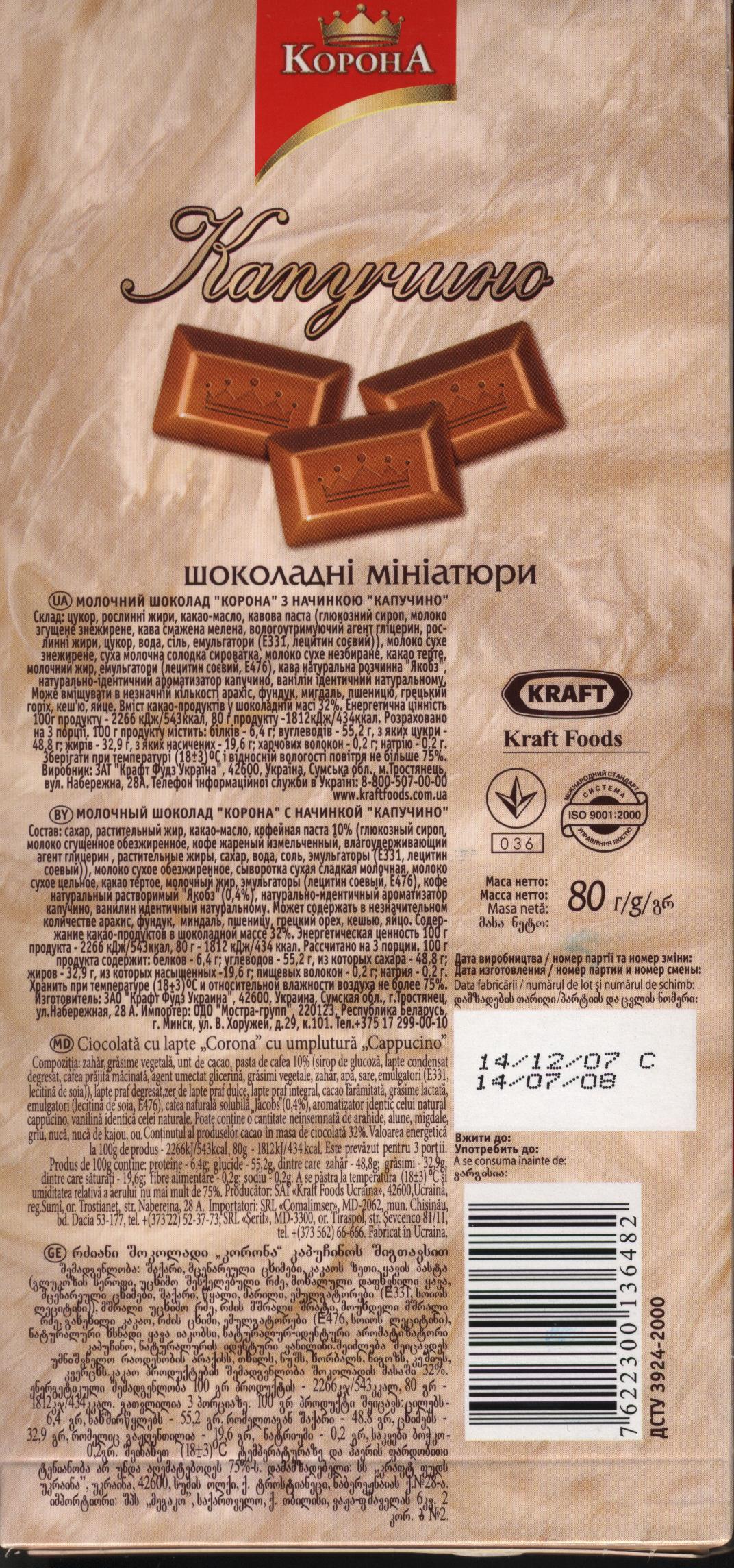 “Corona” milk chocolate with coffee capuсcino