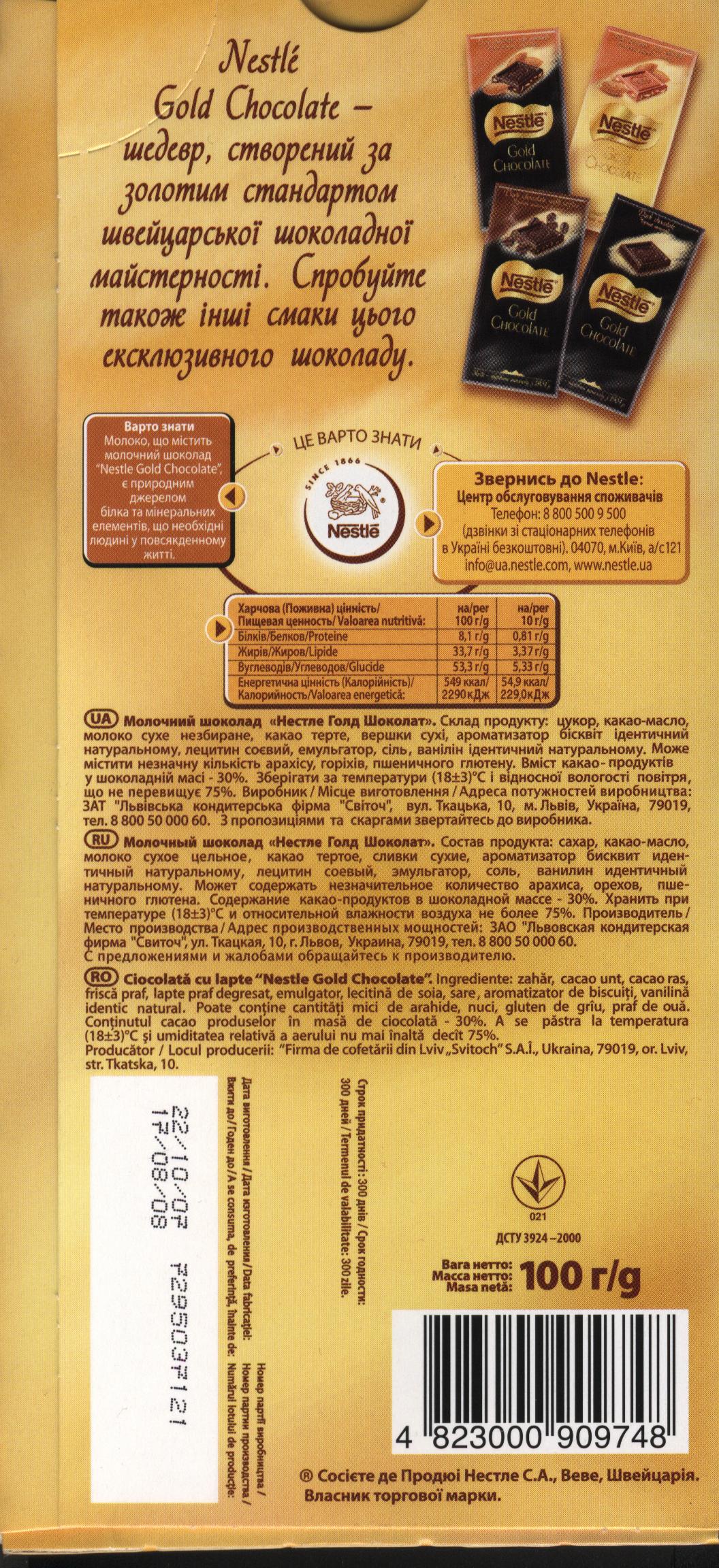Nestle / Gold Chocolate / Milk chocolate / Молочний шоколад / Молочный шоколад