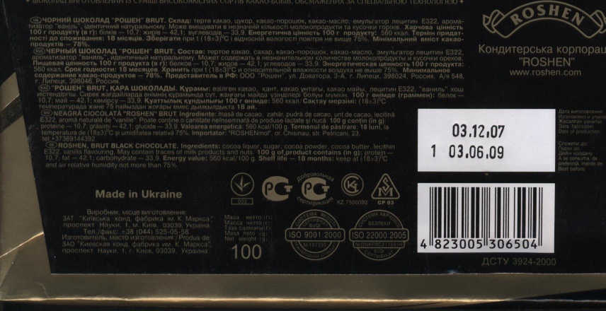 Roshen \ Черный шоколад Brut