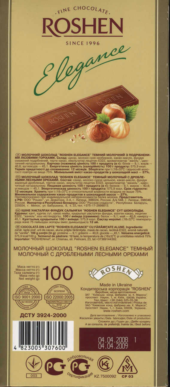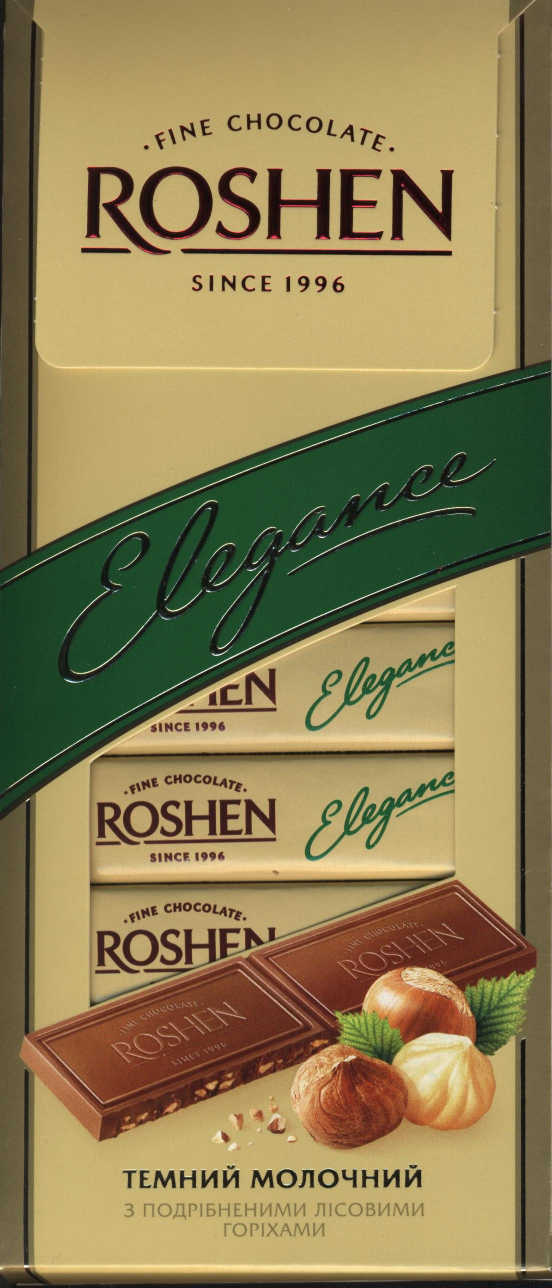 Roshen \ Elegance \ Темний молочний шоколад з подрібненими лісовими горіхами \Темный молочный шоколад с дроблеными лесными орехами
