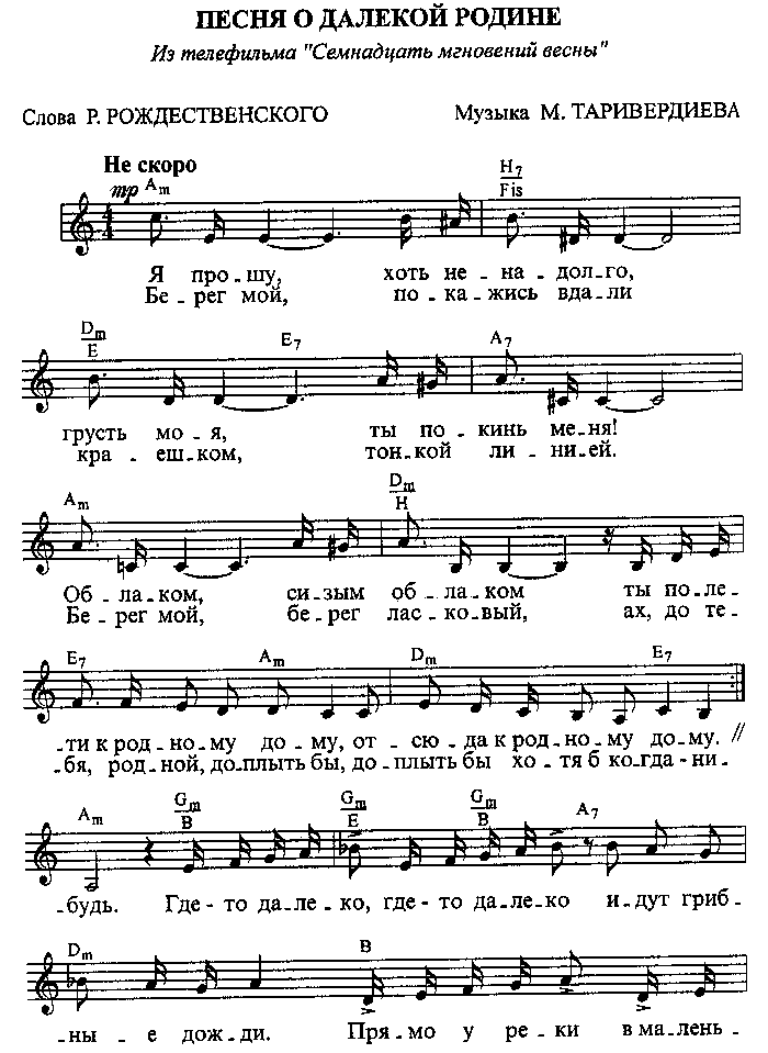 Ноты к песне из кинофильма Семнадцать мгновений весны